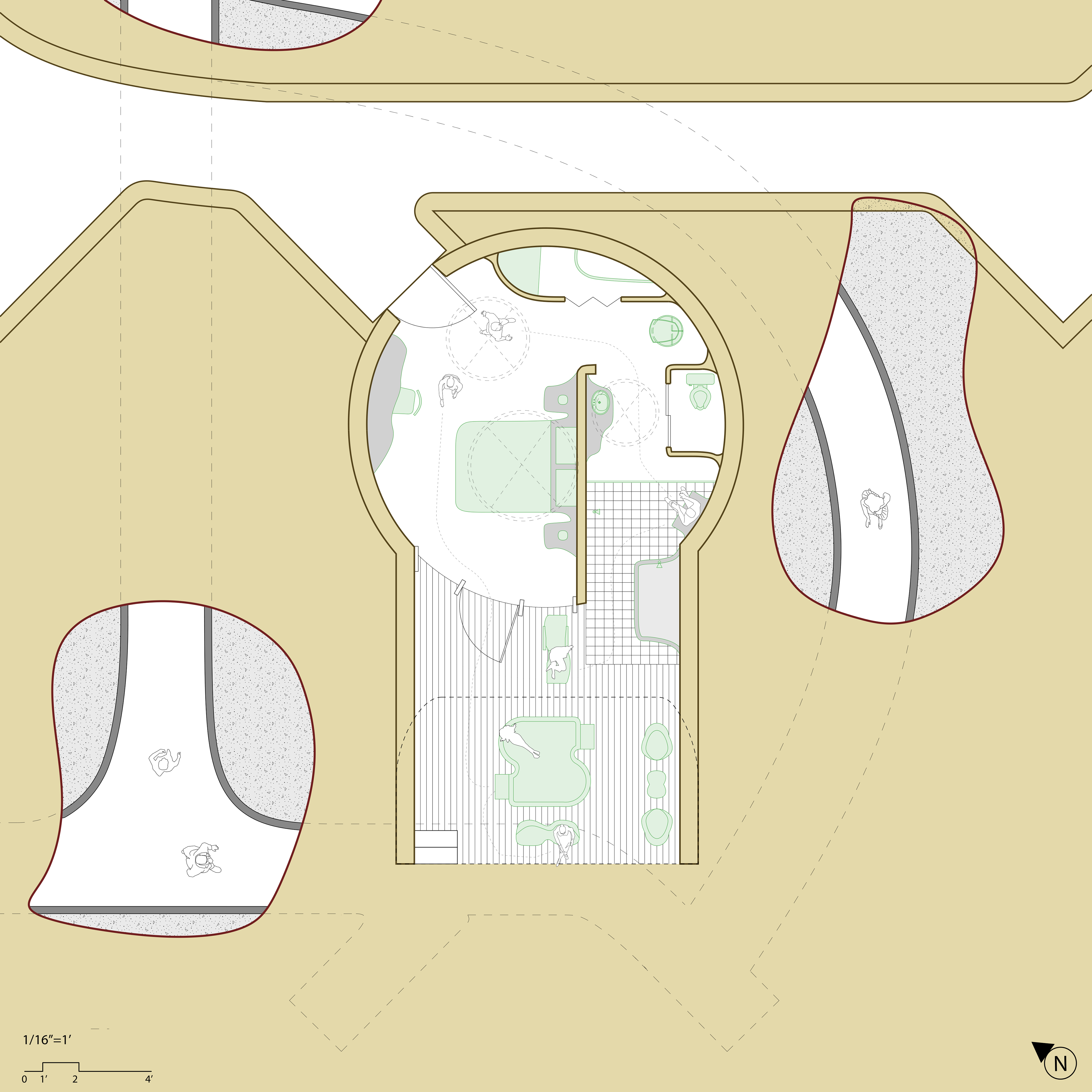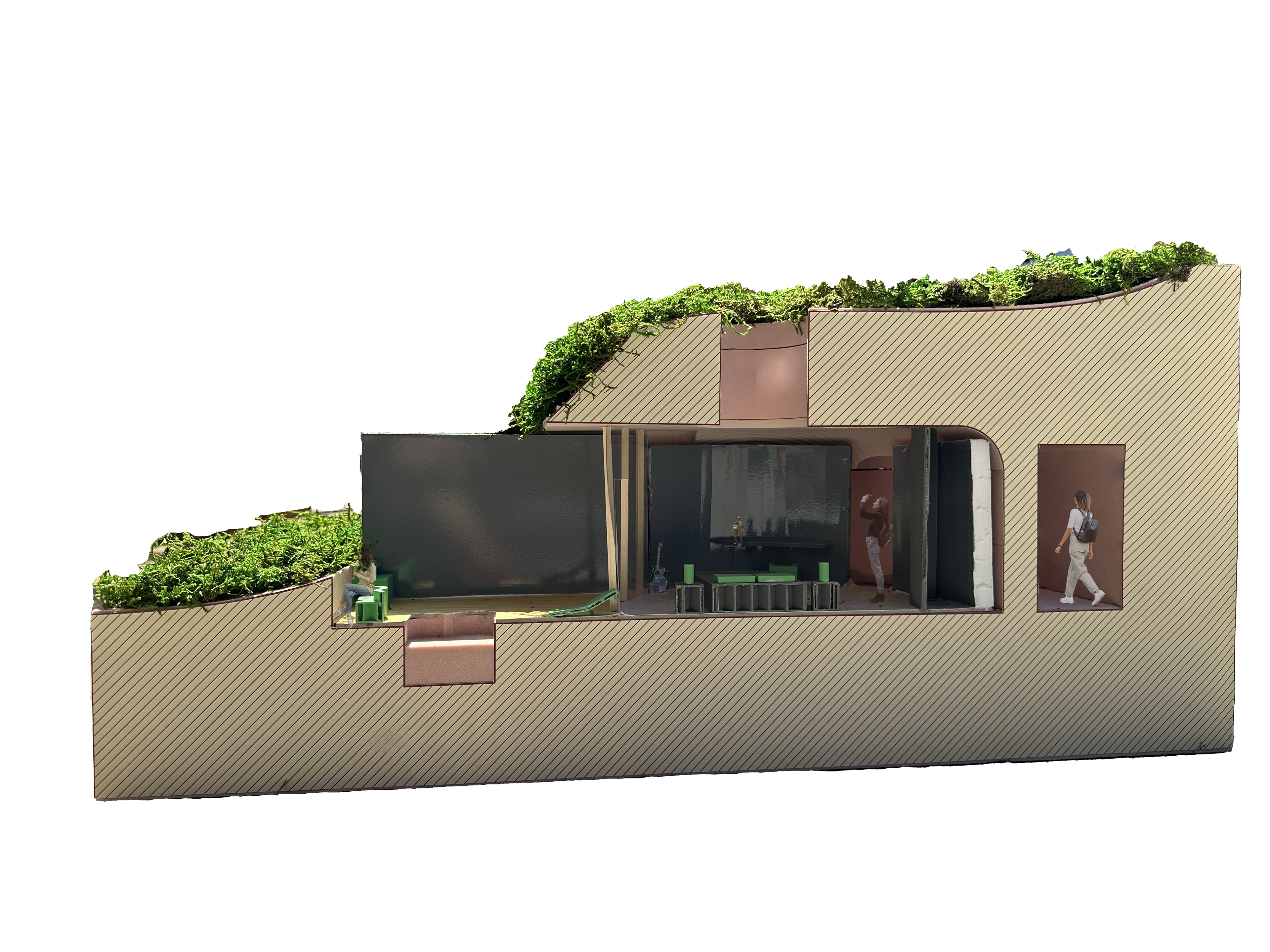 A destination hotel designed to integrate seamlessly with the existing hillside topography. The concept centers on submerging the architecture into the slope to preserve the natural landscape while offering unobstructed ocean views from each guest room. The design becomes a new attraction while introducing a new approach to Cambria hotels by directly integrating the guest into the hillside. The design emphasizes minimal visual impact, using a low-profile form to blend with the green coastal environment. This project explores matters of retreat, landscape integration, and environment disruption by responding to the existing site and assimilating.