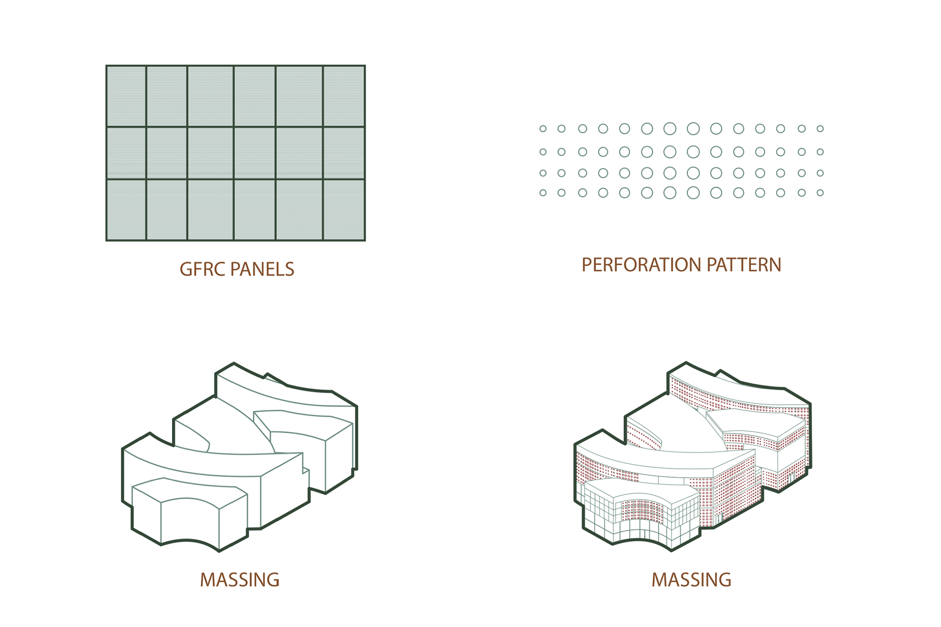The project preserves the spirit of the existing structure while introducing a contemporary architectural language through the use of GFRC (Glass Fiber Reinforced Concrete) panels. These panels serve as a passive design strategy, improving thermal performance and natural shading while maintaining visual porosity and connection to the urban context. The building becomes both heritage and innovation, honoring its past while adapting to the needs of the present.